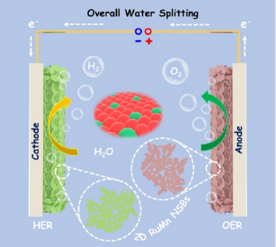 Title: Compensating electronic effect enables fast site-to-site electron transfer over ultrathin RuMn nanosheet branches toward highly electroactive and stable water splitting