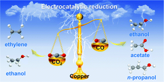 Abstract: The electrocatalytic reduction of CO2 with H2O to multi-carbon (C2+) compounds, in particular, C2+ olefins and oxygenates, which have versatile applications in the chemical and energy industries, holds great potential to mitigate the depletion of fossil resources and abate carbon emissions. There are two major routes for the electrocatalytic CO2 reduction to C2+ compounds, i.e., the direct route and the indirect route via CO. The electrocatalytic CO2 reduction to CO has been commercialised with solid oxide electrolysers, making the indirect route via CO to C2+ compounds also a promising alternative. This tutorial review focuses on the similarities and differences in the electrocatalytic CO2 and CO reduction reactions (CO2RR and CORR) into C2+ compounds, including C2H4, C2H5OH, CH3COO− and n-C3H7OH, over Cu-based catalysts. First, we introduce the fundamental aspects of the two electrocatalytic reactions, including the cathode and anode reactions, electrocatalytic reactors and crucial performance parameters. Next, the reaction mechanisms, in particular, the C–C coupling mechanism, are discussed. Then, efficient catalysts and systems for these two reactions are critically reviewed. We analyse the key factors that determine the selectivity, activity and stability for the electrocatalytic CO2RR and CORR. Finally, the opportunities, challenges and future trends in the electrocatalytic CO2RR and CORR are proposed. These insights will offer guidance for the design of industrial-relevant catalysts and systems for the synthesis of C2+ olefins and oxygenates.
