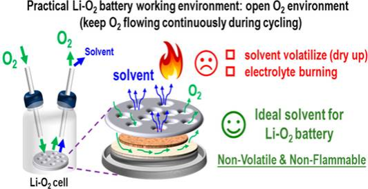 Title: Nonvolatile and Nonflammable Sulfolane-Based Electrolyte Achieving Effective and Safe Operation of the Li–O2 Battery in Open O2 Environment