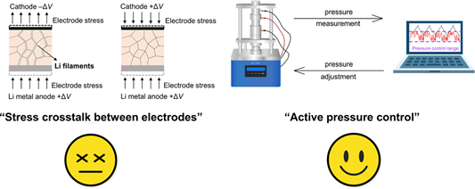 Abstract: Puzzling micro-short circuit behaviors have been widely observed when utilizing Li metal anodes (LMAs) in all-solid-state batteries (ASSBs). Previous studies on Li/Li symmetrical cells have revealed a failure mechanism involving mechanical damage of solid-state electrolytes (SSEs). However, a comprehensive investigation of stress crosstalk between electrodes and their effect on micro-short circuit behaviors in full cells is still lacking. This work investigates three cathode materials (sulfur, NCM811, and LiCoO2) with varying volume changes and compares the short-circuit behavior when paired with the LMAs under identical conditions. Our pressure measurements and cohesive zone model-based finite element analysis indicate that sulfur and NCM811 materials undergo opposite directions of volume changes compared to Li metal anodes during cycling. In this case, the resultant force caused by stress crosstalk between electrodes will lead to more severe damage to SSE grain boundaries. In contrast, LiCoO2 material exhibits consistent volume change direction with the Li metal anode during cycling, resulting in relatively weak mechanical damage to SSEs. Finally, we propose an active pressure control system that helps to alleviate stress crosstalk and enhance cycling life. This study offers new insights into the stress crosstalk between electrodes in full cells, which is essential for developing high-performance ASSLMBs.