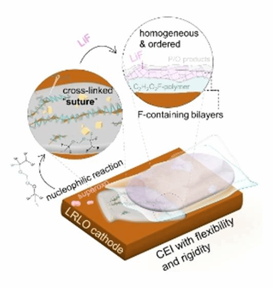 Title: Manipulated Fluoro-Ether derived Nucleophilic Decomposition Products for Mitigating Polarization-Induced Capacity Loss in Li-Rich Layered Cathode