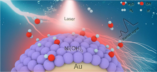 Abstract: There is growing acknowledgment that the properties of the electrochemical interfaces play an increasingly pivotal role in improving the performance of the hydrogen evolution reaction (HER). Here, we present, for the first time, direct dynamic spectral evidence illustrating the impact of the interaction between interfacial water molecules and adsorbed hydroxyl species (OHad) on the HER properties of Ni(OH)2 using Au/core-Ni(OH)2/shell nanoparticle-enhanced Raman spectroscopy. Notably, our findings highlight that the interaction between OHad and interfacial water molecules promotes the formation of weakly hydrogen-bonded water, fostering an environment conducive to improving the HER performance. Furthermore, the participation of OHad in the reaction is substantiated by the observed deprotonation step of Au@2 nm Ni(OH)2 during the HER process. This phenomenon is corroborated by the phase transition of Ni(OH)2 to NiO, as verified through Raman and X-ray photoelectron spectroscopy. The significant redshift in the OH-stretching frequency of water molecules during the phase transition confirms that surface OHad disrupts the hydrogen-bond network of interfacial water molecules. Through manipulation of the shell thickness of Au@Ni(OH)2, we additionally validate the interaction between OHad and interfacial water molecules. In summary, our insights emphasize the potential of electrochemical interfacial engineering as a potent approach to enhance electrocatalytic performance.
