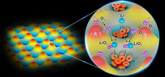 Abstract: Lithium–oxygen (Li–O2) batteries, renowned for their exceptionally high theoretical energy density, have garnered significant interest as a prime candidate for future electric device development. However, practical testing often yields unsatisfactory capacity due to the tendency of their solid-phase discharge products to cover active sites on the electrode surface. Optimizing the growth mechanism of these solid-phase products and addressing the storage issue to narrow the gap between actual and theoretical capacities stands as the core challenge in Li–O2 battery development. Here, a fluorine-doped bimetallic cobalt-nickel oxide (CoNiO2–xFx/CC) with an interlaced catalytic surface (ICS) and an open, corncob-like structure is proposed as an oxygen electrode. Unlike conventional oxide electrodes with a “single adsorption catalytic mechanism”, the ICS of the CoNiO2–xFx/CC electrode offers a compelling “competitive adsorption catalytic mechanism”. This is attributed to the diverse selective sites within the ICS, where oxygen sites preferentially facilitate oxygen conversion due to their higher affinity for oxygen, while fluorine sites preferentially contribute to the growth of Li2O2 owing to their stronger affinity for LiO2. This transformation in the formation mechanism of Li2O2 and its morphology from film along the electrode surface to toroidal particles effectively mitigates the issue of buried active sites. Additionally, the unique structure of the CoNiO2–xFx/CC electrode aids in the storage and decomposition of Li2O2 products. Its corncob-like open architecture not only promotes the capture and release of oxygen but also facilitates the formation of well-contacted Li2O2/electrode interfaces, akin to a “corn on the cob” design. Consequently, the Li–O2 battery employing the CoNiO2–xFx/CC cathode demonstrates a high specific capacity of up to 30923 mAh g–1 and a lifespan exceeding 580 cycles, surpassing most reported metal oxide-based cathodes. This work offers a promising solution to the issues of buried active sites and storage of insoluble products in metal-air batteries.