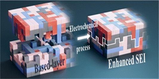 Abstract: For the efficient functioning of a lithium anode, it requires an ideal protective layer that has its own strength and strongly bonds with the substrate. There are many studies on the strength of such protective layers, but very few reports on their bond strength with substrates. Herein, a design strategy is proposedto pre-construct a based-layer, where a mortice-tenon joint will connect with the subsequent electrochemically active SEI that is set on a Li anode surface. Initially, a tightly bonded base layer was chemically formed via the reaction between 2-(fluorosulfonyl)difluoroacetate (DFSA) and lithium metal. Then, trimethylsilyl 2-(fluorosulphonyl)difluoroacetate (TSFSA), which has a similar molecular structure and same functional group as DFSA, was introduced to act as an SEI enhancer that can preferentially decompose over carbonate solvents under electrochemical conditions with the same components of the based-layer, which was thus strengthened to form an enhanced SEI (ESEI). The Li anode with ESEI achieved long cycling stability (≥ 2100 h) and a high average CE (99.2%) in carbonate electrolytes. Full cells with high cathode loading (20.5 mg cm−2) also achieved high cycling stability at low N/P ratios, demonstrating its great prospects for practical applications in high energy density Li-metal batteries.
