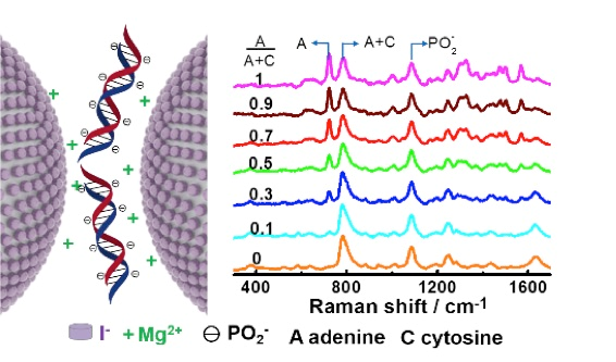 任斌教授课题组发展出了一种碘修饰银纳米粒子的方法,显著提高了生物大分子等弱信号体系的SERS检测的重现性和可靠性,并将其应用于蛋白质天然结构的检测(Anal. Chem. 2014, 86, 2238−2245.)。为了检测DNA,他们对该方法作了改进,高重现的检测到单链和双链DNA自身的SERS光谱。他们发现,DNA分子内的PO2-信号可以作为SERS内标对每个碱基绝对信号强度进行标定,从而实现单碱基的检测灵敏度,并用于DNA组成和杂交的鉴定。