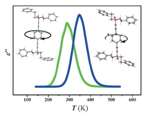 分子转动动力学研究对于揭示材料的介电、导电及铁电等性能的作用机制具有重要意义。龙腊生课题组通过在分子马达转子上修饰不同极性取代基团来改变分子马达定子与转子间氢键作用强度及方式,实现了对分子马达转子转动速度的调控。