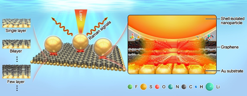 本工作中,研究团队提出了一种基于壳层隔绝纳米粒子和金属基底耦合的间隙增强拉曼光谱策略,并结合原子力显微术等表征技术,研究了层数可调的石墨烯表面上吸附离子构型的电位依赖性和电容曲线。研究发现,随着石墨烯层数的增加,石墨烯的性质从类金属行为向类石墨行为转变,充电机理由单层石墨烯中的共离子解吸附主导转变为少层石墨烯中的离子交换主导,并且显著影响电化学性能,从而为理解和调控电化学电容器的充电动力学提供了新的途径。该方法有望进一步拓展到其它二维材料的表界面科学和能源科学研究。