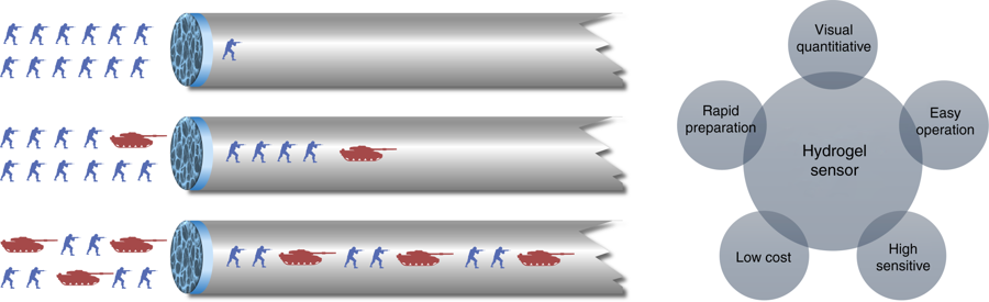 DNA hydrogels have received considerable attention in analytical science, however, some limitations still exist in the applications of intelligent hydrogels. In this paper, we describe a way to prepare gel film in a capillary tube based on the thermal reversible principle of DNA hydrogel and the principle of capillary action. Because of the slight change in the internal structure of gel, its permeability can be increased by the addition of some specific targets. The capillary behavior is thus changed due to the different permeability of the hydrogel film. The duration time of the target solution flowing through the capillary tube with a specified length is used to quantify this change. With this proposed method, ultra-trace DNA hydrogel (0.01 μL) is sufficient to realize the sensitive detection of cocaine without the aid of other instruments, which has a low detection limit (1.17 nM) and good selectivity.
