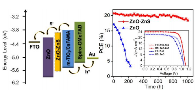 我室郑南峰教授在 JACS 上发表论文:High-efficiency, hysteresis-less, UV-stable perovskite solar cells with cascade ZnO-ZnS electron transport layer