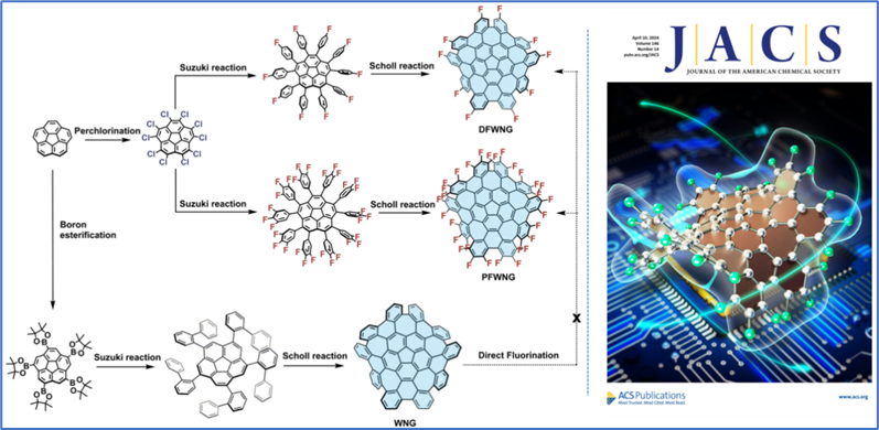 近日,我室谢素原院士课题组张前炎教授在石墨烯边缘氟化研究方面取得新进展,相关成果以“Decafluorinated and Perfluorinated Warped Nanographenes: Synthesis, Structural Analysis, and Properties”为题发表于J. Am. Chem. Soc. ,并被当期选为内封面文章。