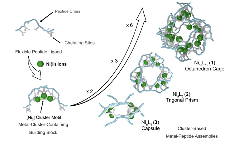 人工超分子结构提供了一个模拟生物功能的分子平台。与传统的刚性芳香配体相比,多肽配体在构象丰富性、内在手性和生物相容性方面具有天然的优势。然而,由柔性多肽配体构筑具有大空腔的金属-多肽超分子结构极具挑战。