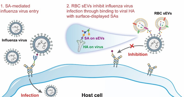 我室颜晓梅教授课题组在细胞外囊泡抑制流感病毒领域取得重要进展,相关成果以 “Red Blood Cell-Derived Small Extracellular Vesicles Inhibit Influenza Virus through Surface-Displayed Sialic Acids”为题于近日在线发表于《德国应用化学》(Angew. Chem. Int. Ed., 2024, e202413946,DOI:10.1002/anie.202413946)。