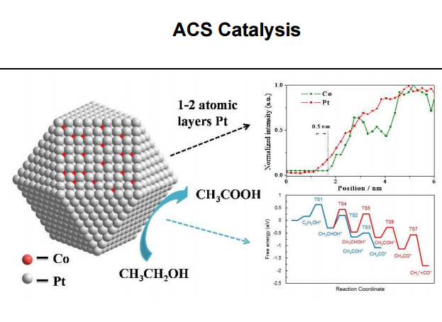 我室孙世刚教授在ACS catalysis上发表题为“Platinum–Cobalt bimetallic nanoparticles with Pt skin for electro-oxidation of ethanol” 的论文。