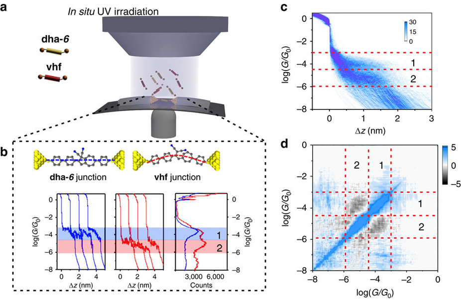 我室洪文晶教授在 Nature Communications 上发表论文:Single-molecule detection of dihydroazulene photo-thermal reaction using break junction technique.