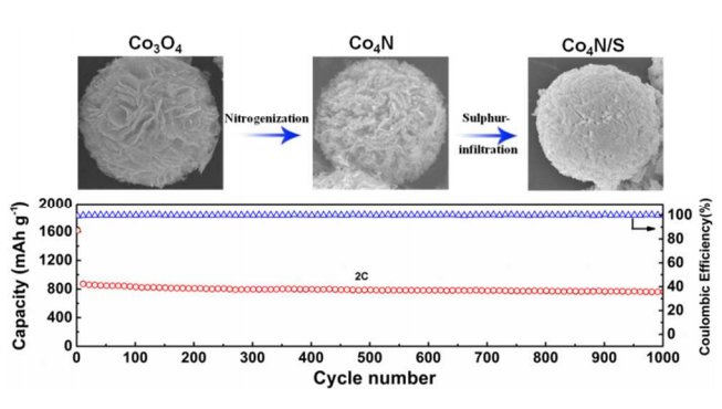 我室董全峰教授在 ACS Nano 发表论文:Co4N Nanosheets Assembled Mesoporous Sphere as a Matrix for Ultrahigh Sulfur Content Lithium−Sulfur Batteries