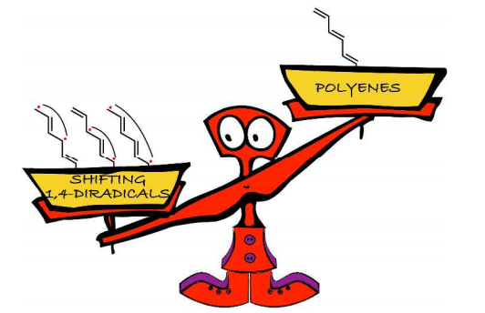 The nature of the electronic-structure of polyenes, their delocalization features and potential diradicaloid characters constitute a fundamental problem in chemistry. To address this problem we used valence bond self-consistent field (VBSCF) calculations and modeling of polyenes, C2nH2n+2 (n = 2-10). The theoretical treatment shows that starting with n = 5, the polyene’s wave function is mainly a shifting 1,4-diradicaloid; a character that increases as the chain length increases, while the contribution of the fundamental Lewis structure with alternating double and single bonds (1) decays quite fast and becomes minor relative to the diradicaloid pack. We show how, nevertheless, it is this wave function that predicts that polyenes will still exhibit alternating short/long CC bond like the fundamental structure 1. Furthermore, despite the decay of the VB contribution of 1, it remains the single structure with the largest weight among all the individual structures. The mixing of all the 1,4-diradicaloid structures into 1 follows perturbation theory rules, with the result that the delocalization energy due to this mixing is additive and behaves as a linear function of the number of the double bonds, ΔEdel = -6.9 • n (kcal mol-1). The VB modeling shows that while the conjugation stabilizes structure 1, this stabilization energy is energetically overridden by the Pauli repulsion between two adjacent double bonds. Nevertheless, unsubstituted polyenes remain planar; this observation is addressed. Potential manifestations of the diradicaloid nature of polyenes are discussed, and it is concluded that the diradicaloid character is clearly not a well-defined physical property as in real diradicals. Thus, we went full circle to realize that our philosophical question may not be strictly resolved. The localized/delocalized properties of polyenes seem to define a “chemical duality principle”. This duality of molecular wave functions is a ubiquitous beguiling phenomenon…