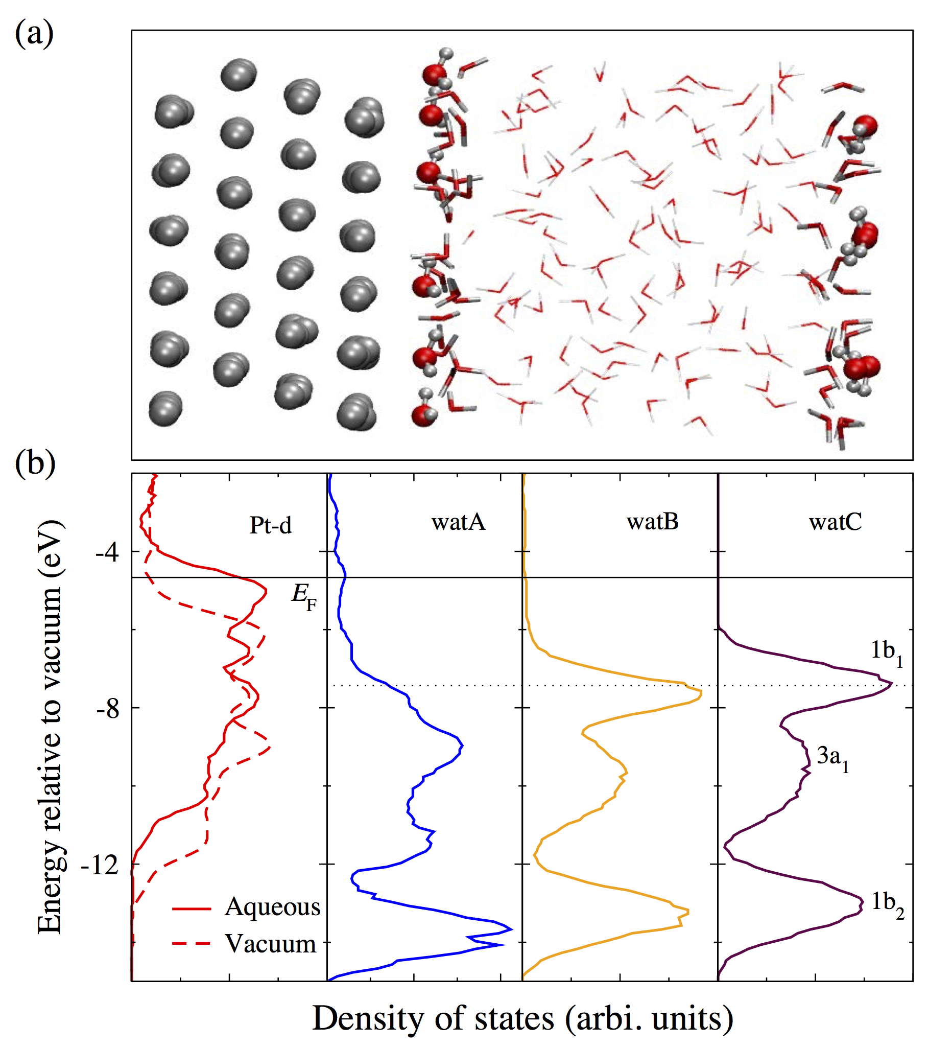 金属-水界面在电化学反应中起到重大作用,为了能够直接将金属-水界面的理论模拟结果与实验数据相对比,其中一个亟待解决的核心问题是如何准确计算金属-水界面的电极电势。程俊教授课题组近几年内发展的计算氢电极方法(Cheng et al. Acc. Chem. Res., 2014, 47, 3522)从原理上讲可以解决这一难题,但实际操作中由于计算金属-水界面中的水合氢离子的去质子化能所需要的计算量太大而难以实现。近期,他们利用金属-水界面模型中体相水的静电势作为二次参照,将金属-水界面中质子溶剂化能的计算转嫁为体相水质子溶剂化能的计算,从而极大地降低了计算成本,实现对金属电极零电荷电势的精确计算。该方法可以直接拓展应用到其它固液(如半导体-水)界面。同时,该工作还发现界面水与金属表面的作用导致电子云重排,对于Pt(111)面,这一因素可导致界面电势变化超过1 eV,而界面水的取向在零电荷电势下对于界面电势的变化贡献非常小,这一发现改变了以前电化学家对于界面电势的通常认知。