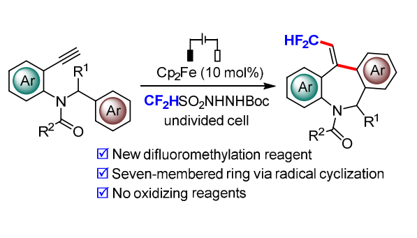 我室徐海超 JACS 教授发表论文:Electrochemical Difluoromethylarylation of Alkynes