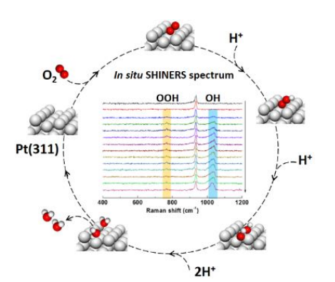我室李剑锋教授在 JACS 上发表论文:Direct In Situ Raman Spectroscopic Evidence of Oxygen Reduction Reaction Intermediates at High-Index Pt(hkl) Surfaces