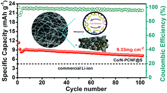 Spatial confinement is a desirable successful strategy to trap sulfur within its porous host and has been widely applied in lithium–sulfur (Li–S) batteries. However, physical confinement alone is currently not enough to reduce the lithium polysulfide (Li2Sn, 4 ≤ n ≤ 8, LIPSs) shuttle effect with sluggish LIPS-dissolving kinetics. In this work, we have integrated spatial confinement with a polar catalyst, and designed a three-dimensional (3D) interconnected, Co decorated and N doped porous carbon nanofiber (Co/N-PCNF) network. This Co/N-PCNF film serves as a freestanding host for sulfur trapping, which could effectively facilitate the infiltration of electrolyte and electron transport. In addition, the polar Co species possess strong chemisorption with LIPSs, catalyzing their reaction kinetics as well. As a result of this rational design and integration, the Co/N-PCNF@S cathode with a sulfur loading of 2 mg cm−2 exhibits a high initial discharge capacity of 878 mA h g−1 at 1C, and maintains a discharge capacity of 728 mA h g−1 after 200 cycles. Even with high sulfur loading of 9.33 mg cm−2, the cathode still keeps a stable areal capacity of 7.16 mA h cm−2 at 0.2C after 100 cycles, which is much higher than the current areal capacity (4 mA h cm−2) of commercialized lithium-ion batteries (LIBs). This rational design may provide a new approach for future development of high-density Li–S batteries with high sulfur loading.