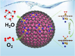 摘要:Metal‐containing nanoparticles (M‐NPs) in metal/nitrogen‐doped carbon (M‐N‐C) catalysts have been considered hostile to acid oxygen reduction reaction (ORR). Some works have confirmed that M‐NPs can synergistically increase ORR activity in alkaline media. However, the relation between M‐NPs and the active sites of metal coordinated with nitrogen (MNx) is hard to be established in acid medium due to the poor stability of M‐NPs. Herein, we develop a strategy to successfully construct a new FeCo‐N‐C catalyst containing the highly active M‐NPs and MN4 composite sites (marked as M/FeCo‐SAs‐N‐C). The enhanced catalytic activity and stability of M/FeCo‐SAs‐N‐C is discovered in our systematic experiments. Moreover, theoretical calculation reveals that there is a strong interaction between M‐NPs and FeN4 sites, which can favor ORR by activating the O‐O bond, thus facilitating a direct 4e‐ process. Those findings firstly shed light on the highly active M‐NPs and FeN4 composite sites for catalyzing acid oxygen reduction reaction, and the relevant reaction mechanism is suggested.