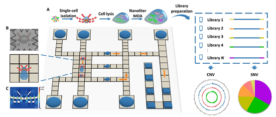 单细胞全基因组测序(whole-genome sequencing, WGS)是表征细胞内DNA动态变化的关键手段,可为我们提供全面、深度的生物学信息,是生命科学领域研究的热点。然而,单细胞全基因组测序仍面临着诸如样品制备复杂、成本高、扩增偏置性强、误差大的挑战。虽然现阶段发展了一些微流控全基因组测序技术,能够通过降低液滴体积实现高度均一性的全基因组测序样品制备,但仍然无法解决其它大部分问题。