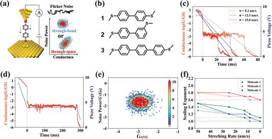 摘要:The electronic noise characterization of single-molecule devices provides insights into the mechanisms of charge transport. In this work, it is reported that flicker noise can serve as an indicator of the time-dependent evolution of charge transport mechanisms in the single-molecule break junction process. By introducing time-frequency analysis, the authors find that flicker noise components of the molecule junction show time evolution behavior in the dynamic break junction process. A further investigation of the power-law dependence of flicker with conductance during the dynamic break junction process reveals that the mechanism of charge transport transits from the through-space transport to the through-bond transport, and is dominated by through-space transport again when the junction is about to rupture. The authors’ results provide a flicker noise-based way to characterize the time-dependent evolution of charge transport mechanisms in single-molecule break junctions.