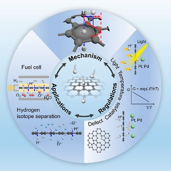 摘要:Two-dimensional (2D) crystals, despite their atomic thickness, have long been considered as impermeable membranes to all molecules and atoms under ambient conditions: even the smallest of atoms, hydrogen, is expected to take billions of years to penetrate the 2D lattice covered with dense electron clouds. Recently it has been found that monolayer graphene, hexagonal boron nitride, and some other one-atom-thick crystals are highly permeable to protons, raising fundamental questions about the details of the transport process. In this Perspective, we review the mechanism of proton transport through 2D crystals and the related room-temperature quantum effects; the potential applications of 2D membranes in proton-related separation and sieving techniques, including proton exchange membranes and hydrogen isotope separation; and factors that enhance proton permeation and in turn influence 2D membrane design.