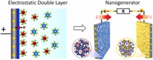 摘要:Triboelectric nanogenerator (TENG) is an efficient mechanical energy harvesting technology that relies on the coupling effects of contact electrification and electrostatic induction. Here, inspired by the principles of electrical double layer and supercapacitor (SC), we present a newly designed TENG based on electrostatic double layer formed by electrostatic charges adsorbing on the surface of the dielectric layer coated on the electrodes. We built three-dimensional electrodes using polyurethane sponge and silver nanowires, by mimicking the structure and mechanism of SC. After electrochemical polarization charging or corona charging, a thirteen times enhancement of output power was achieved. Furthermore, a whole compressible self-charging power system composed of TENG and SC was fabricated to sustainably drive electric devices. These findings show a proof-of-concept TENG based on electrostatic double layer, and provide new opportunities for chemical principles to promote energy conversion.