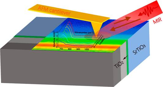摘要:Oxide heterointerfaces with high carrier density can interact strongly with the lattice phonons, generating considerable plasmon–phonon coupling and thereby perturbing the fascinating optical and electronic properties, such as two-dimensional electron gas, ferromagnetism, and superconductivity. Here we use infrared-spectroscopic nanoimaging based on scattering-type scanning near-field optical microscopy (s-SNOM) to quantify the interaction of electron–phonon coupling and the spatial distribution of local charge carriers at the SrTiO3/TiO2 interface. We found an increased high-frequency dielectric constant (ε∞ = 7.1–9.0) and charge carrier density (n = 6.5 × 1019 to 1.5 × 1020 cm–3) near the heterointerface. Moreover, quantitative information between the charge carrier density and extension thickness across the heterointerface has been extracted by monochromatic near-field imaging. A direct evaluation of the relationship between the thickness and the interaction of charge carrier–phonon coupling of the heterointerface would provide valuable information for the development of oxide-based electronic devices.