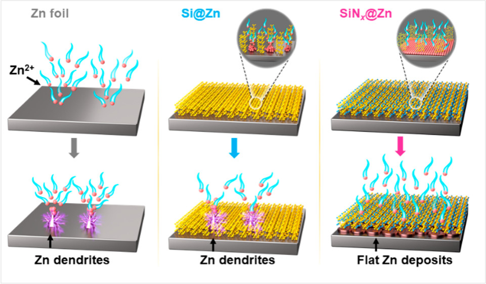 我室梁汉锋副教授在 ACS Energy Letters 上发表论文:Simultaneous Dangling Bond and Zincophilic Site Engineering of SiNx Protective Coatings toward Stable Zinc Anodes
