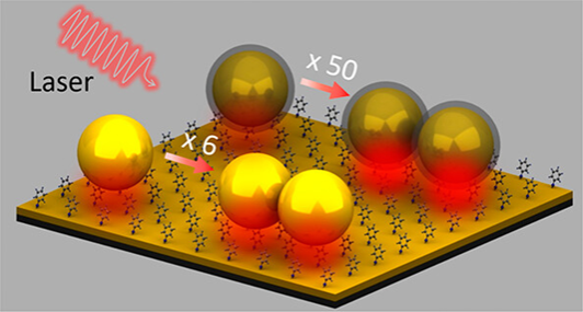 摘要:Surface-enhanced Raman spectroscopy (SERS) is an ultrasensitive spectroscopic technique that has been extensively applied in the studies of catalysis, electrochemistry, material science, etc.; however, it is substrate and material limited. The development of shell-isolated nanoparticle-enhanced Raman spectroscopy (SHINERS) effectively offsets this limitation that attracts enormous attention due to its potential to be applied to any surface. As the core of the SHINERS technique, the inert shell prevents the exposure of the active metal surface, however, also significantly enlarges the metallic gap where the light is trapped. Consequently, the shell is widely considered a side issue to debilitate the coupling efficiency and hinder the sensitivity of SHINERS without systematic studies. Herein, we investigate the shell and structural effect of SHINERS by performing the quantitative optical and structural characterization of single nanostructures. By a statistic of over two hundred nanostructures, we observe that the field enhancement loss due to the shell could be overcome by optimizing the coupling geometry of the shell-isolated nanoparticles (SHINs). An example of SHIN dimers shows even higher field enhancement than their bare Au nanoparticle counterparts as confirmed and explained by FDTD simulations. We demonstrate the signal enhancement of SHINERS saturates with the increasing number of hot spots but could be further optimized by altering the aggregation geometries of the nanoparticles. The sensitivity improvement of the SHINERS technique will boost its broader applications in material science.