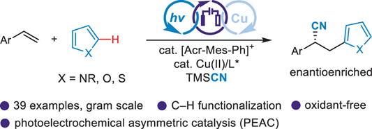 我室徐海超教授在 JACS 上发表论文:Photoelectrochemical Asymmetric Catalysis Enables Enantioselective Heteroarylcyanation of Alkenes via C–H Functionalization