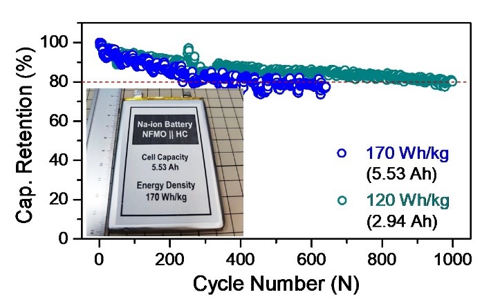 高比能、长循环钠离子电池软包器件循环示意图