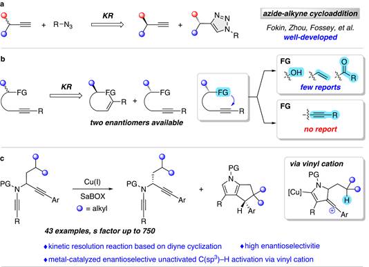 我室吕鑫教授和叶龙武教授在 Nature communications 上发表论文:Enantioselective functionalization of unactivated C(sp3)–H bonds through copper-catalyzed diyne cyclization by kinetic resolution