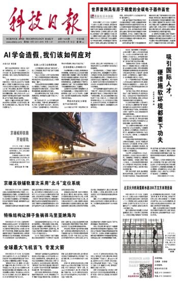 4月16日,《科技日报》头版“最新发现与创新”栏目刊发题为“世界首例具有原子精度的全碳电子器件面世”的消息,报道我校固体表面物理化学国家重点实验室、能源与石墨烯创新平台洪文晶教授、谢素原教授与英国兰卡斯特大学柯林•兰伯特院士团队国际合作的最新研究成果。