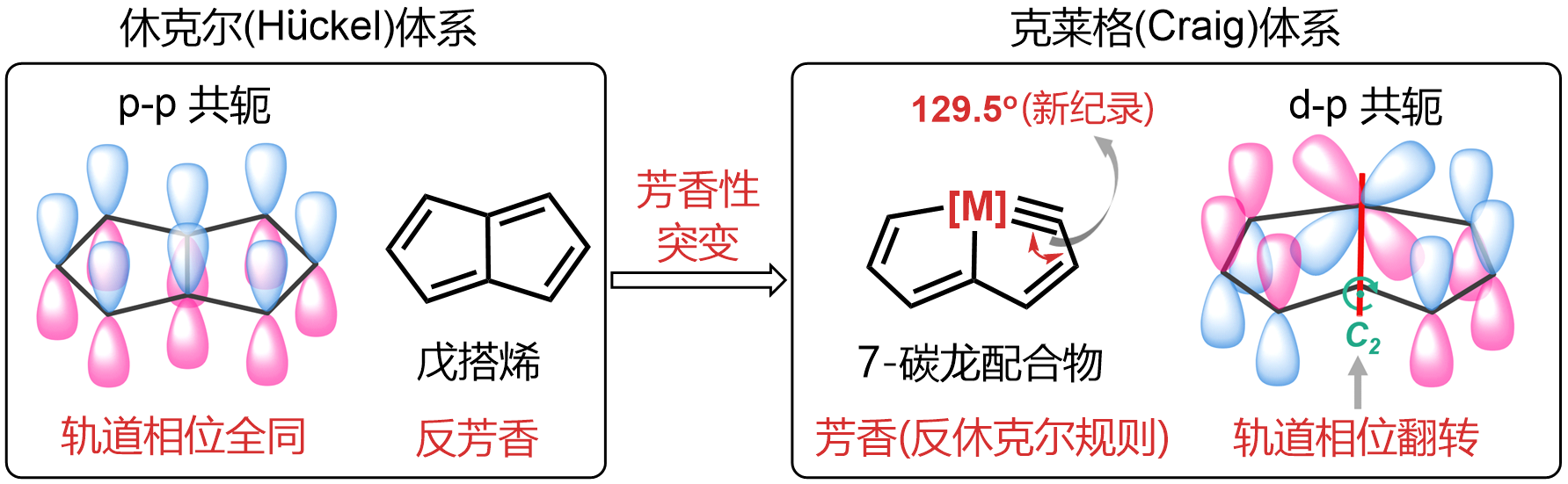 金属导致“芳香性突变”及其“反休克尔芳香性”原理图