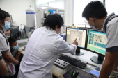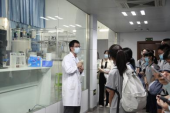 活动第二站,同学们走进实验室仪器平台参观大型仪器运行、切身体会科研工作的非凡魅力。在扫描电镜实验室,吴元菲老师为同学们展示了样品被放大几万倍至几十万倍的图像,目睹微观世界之美;在高场核磁中心,冯柳宾老师带着同学们参观了华南地区唯一一台850MHz高分辨液体核磁共振波谱仪,深入浅出地讲解了核磁共振的基本原理,并介绍了波谱仪在生物大分子三维空间溶液结构解析等科学研究中的具体应用场景,让同学们直呼大开眼界。