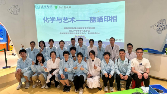 近年来,实验室和厦门科技馆保持密切合作,积极推动科普资源共建共享,合力打造科普精品项目活动,做出了大量有益的实践探索。今年科技活动周期间,双方再次联动,联合化学化工学院科普之窗工作组、化学国家级实验教学示范中心和分析测试中心,在厦门科技馆搭设化学主题展台,面向社会民众推出“化学与艺术——蓝晒印相”体验活动,打造了校馆共建的又一个生动案例。