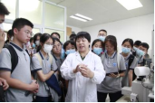 活动第一站,周金梅高级实验师为中学生们带来“中国结与化学”的精彩科普讲座。她利用独创的“分子中国结”为中学生们生动介绍了机械键、机械立体化学、拓扑异构与分子美学等新概念,并细心指导学生亲自动手编织属于自己的分子中国结,将中国结与化学分子结构进行有机融合,引导学生感受化学结构之美。